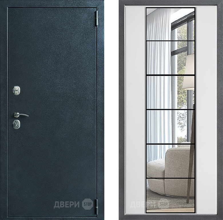Входная Дверь Дверной континент ДК-70 Дизайн ФЛЗ-2 Зеркало Белый софт 960x2050 мм