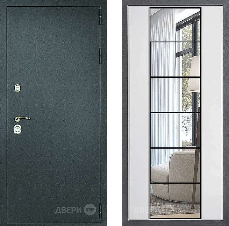 Входная Дверь Дверной континент Рубикон Серебро Дизайн ФЛЗ-2 Зеркало Белый софт 960x2050 мм