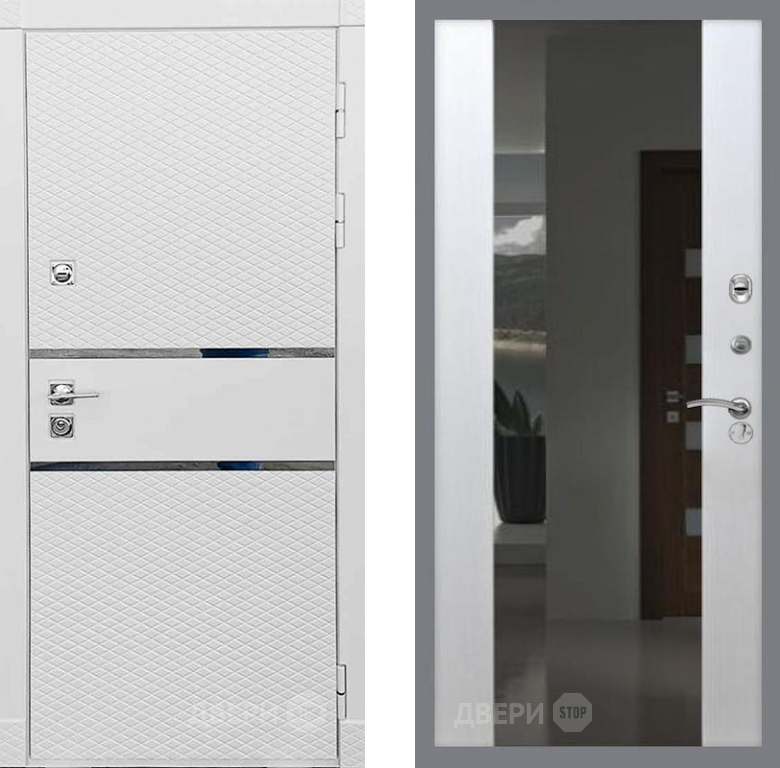 Входная Дверь Рекс (REX) 15 Силк Сноу СБ-16 с Зеркалом Лиственница беж 860x2050 мм