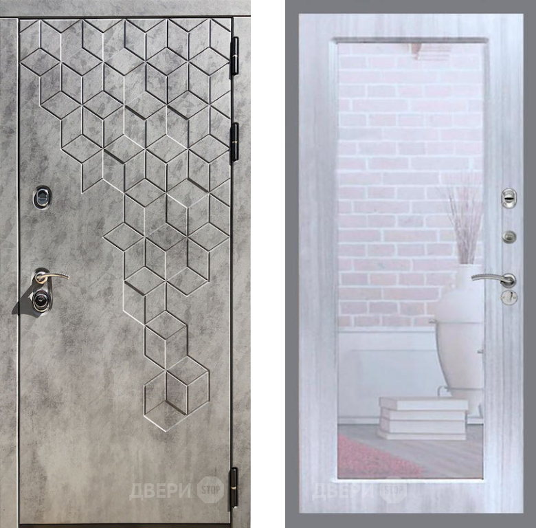 Входная Дверь Рекс (REX) 23 Зеркало Пастораль Сандал белый 960x2050 мм