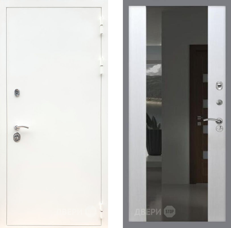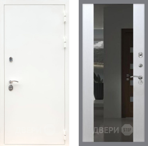 Входная Дверь Рекс (REX) 5 Белая Шагрень СБ-16 Зеркало Белый ясень 960x2050 мм