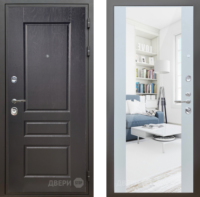Входная Дверь Шелтер (SHELTER) Комфорт Дуб английский 13 с зеркалом Белый матовый 960x2050 мм