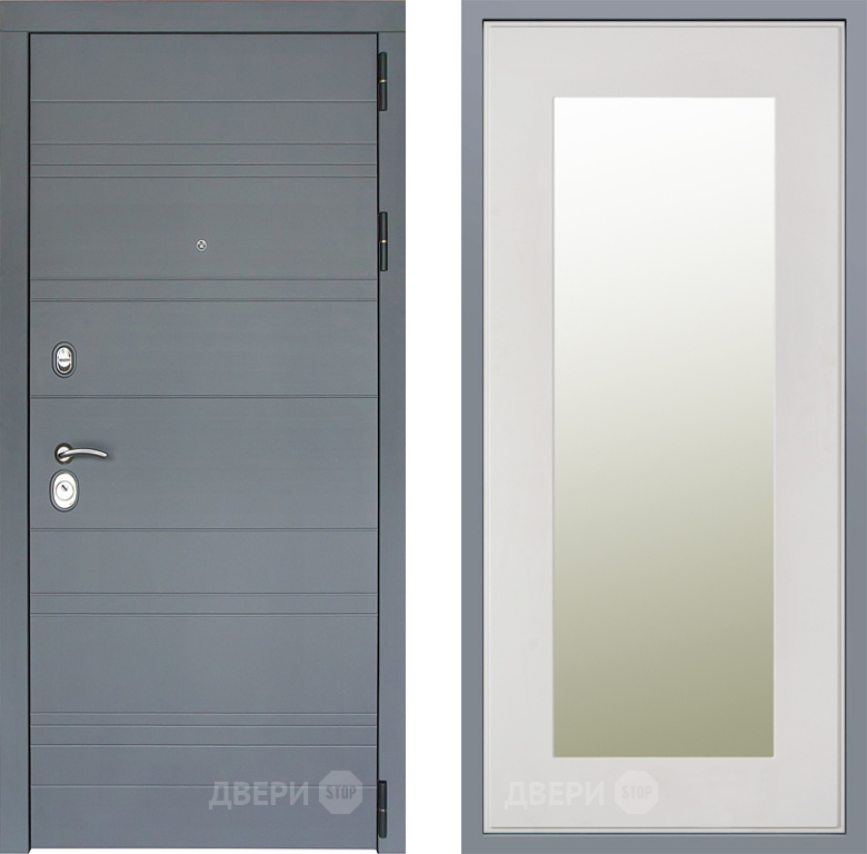 Входная Дверь Заводские двери Лира Софт графит Зеркало Модерн Белый софт 960x2050 мм